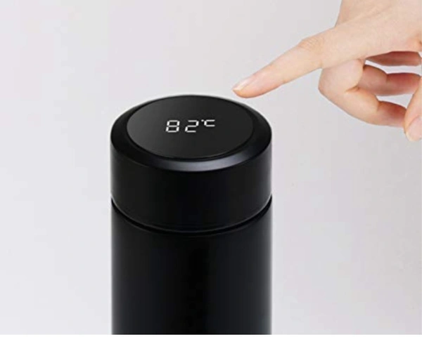 UNIQUE DESIGN - The Vacuum Insulated Stainless Bottle with a detachable tea strainer. You can soak the scattered tea leaves in the cup and use the filter as a compartment when drinking. Makes tea taste that much better! ---- INTELLIGENT TEMPERATURE DISPLAY : The smart water bottle has a waterproof LED display, it's low energy consumption and without a battery change, that can use for several years! Press the top of the thermos softly, Sensitive capacity touch-cover can show the temperature of the water inside the waterproof bottle immediately and can avoid the embarrassment of burning your mouth. You do not have to test the temperature with your mouth or risk getting burned. ---- SMART THERMOS BOTTLE - Stainless Steel Bottle is